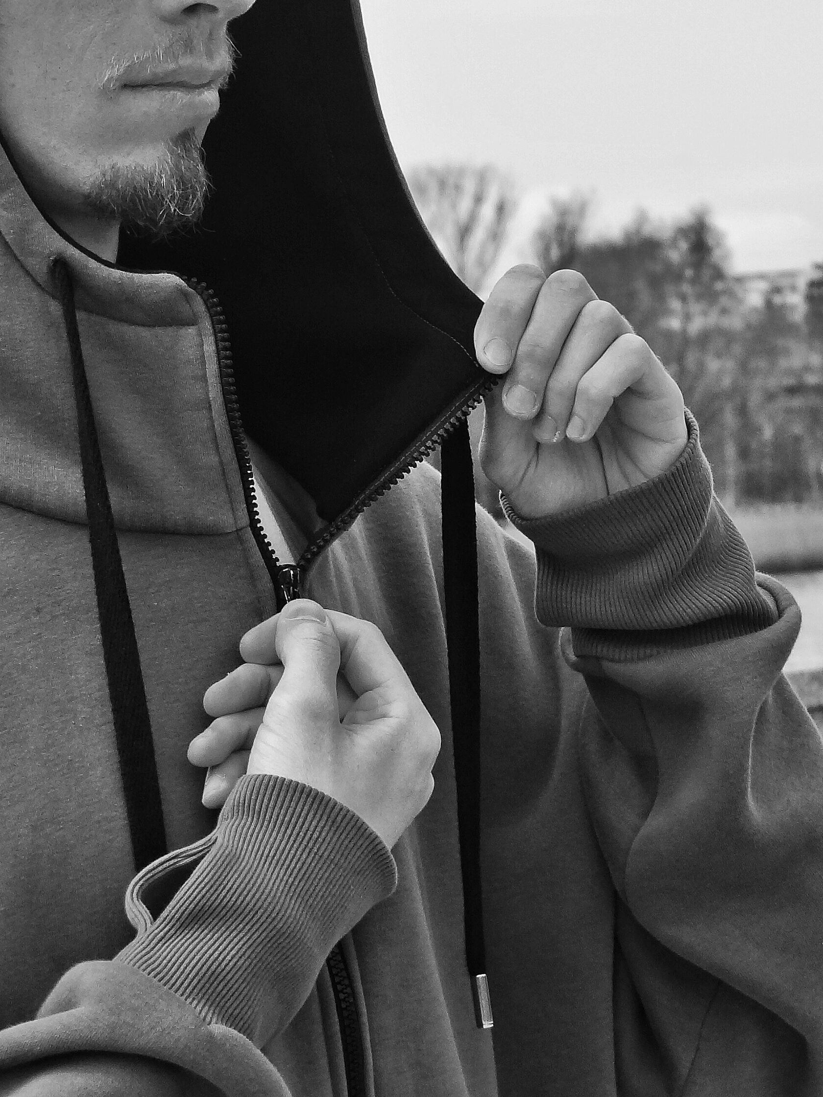 Качественный материал Для производства куртки мы выбрали не самый дешевый, но точно качественный тёплый футер (70% хлопок, 30% полиэстер) с мощным начёсом, который не закатывается и не выцветает. |